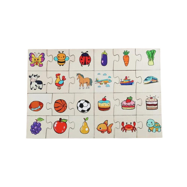 Puzzle de asociere din lemn, 24 piese, formeaza familii sau grupuri din 3 piese