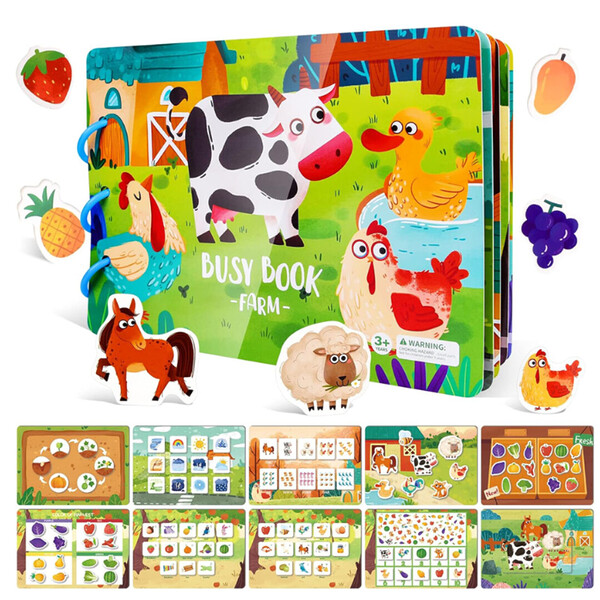 Quiet Book, Busy Book, Carte educativă cu activități, Ferma Animalelor