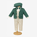 Costum Botez Băieți Albastru Elegant – Set 5 Piese (Sacou, Body Cămașă, Papion, Pantalon, Beretă) – 3-12 Luni, Verde