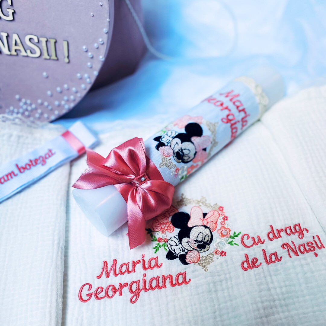 Trusou Botez ,Brodat, Coronita Minnie , Complet cu 7 elemente, Personalizat.