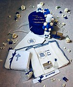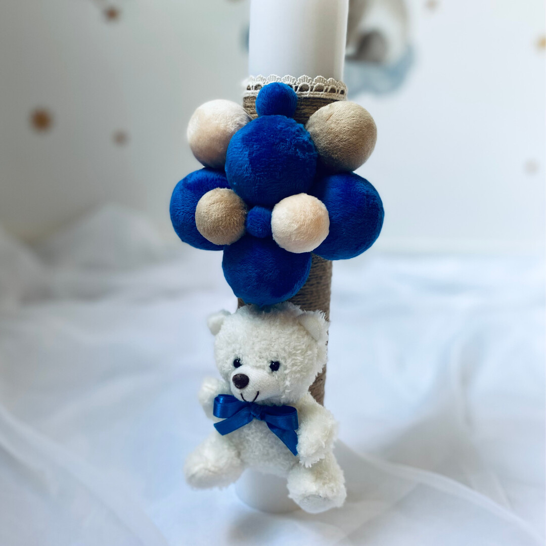 Trusou Botez ,Brodat, Ursulet , Complet cu 7 elemente, Personalizat, Albastru.