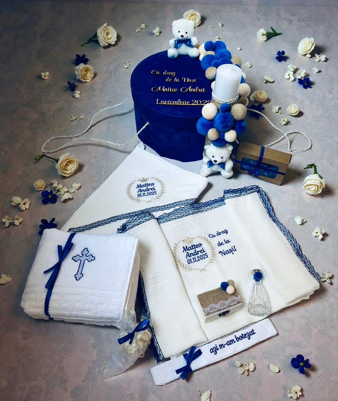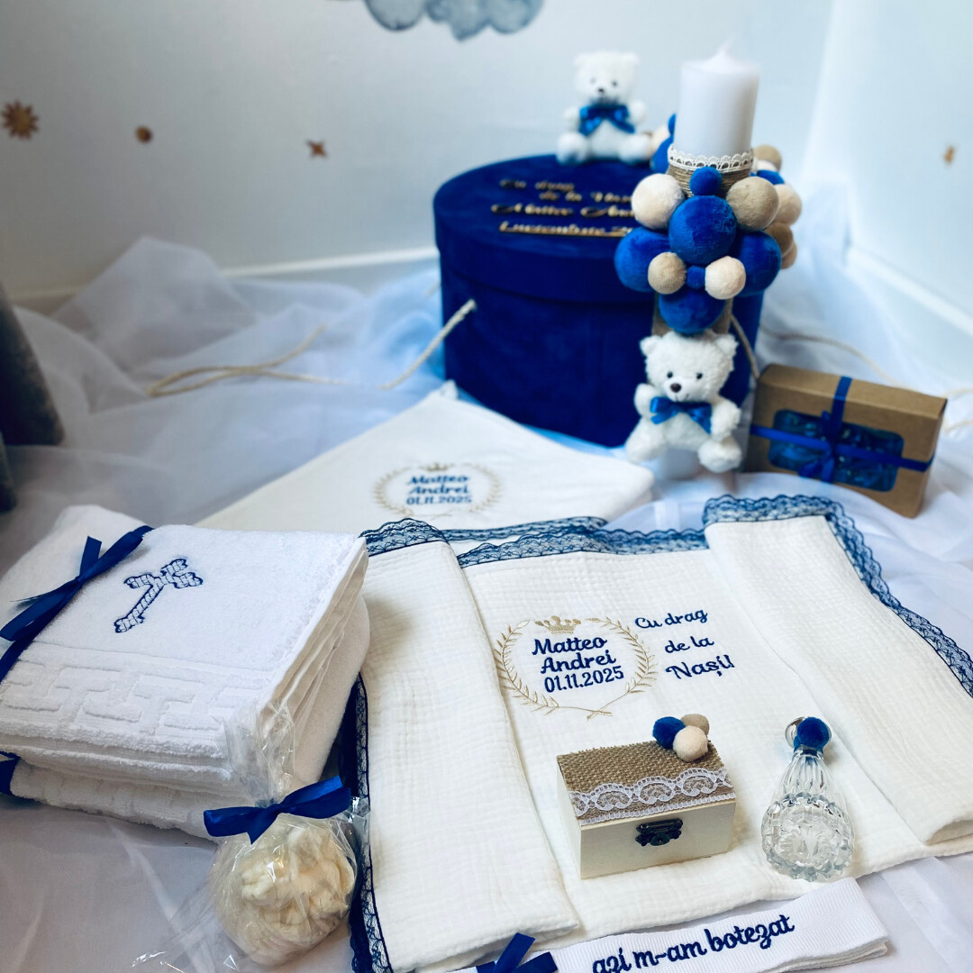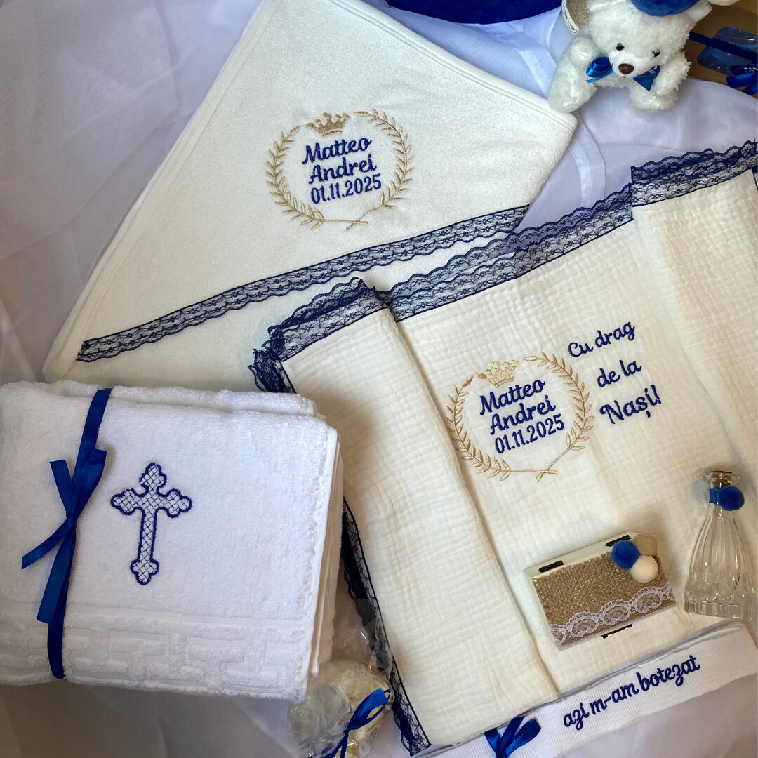 Transformă botezul micutului tau într-un moment magic cu acest trusou elegant și complet, realizat cu grijă și atenție la detalii.