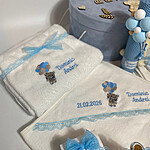 👼 Prosop bebeluș – din bumbac absorbant, perfect pentru ritualul din timpul slujbei, brodat cu personaj, mesaj, nume si data in functie de preferintele clientului (110 cm x 80 cm)